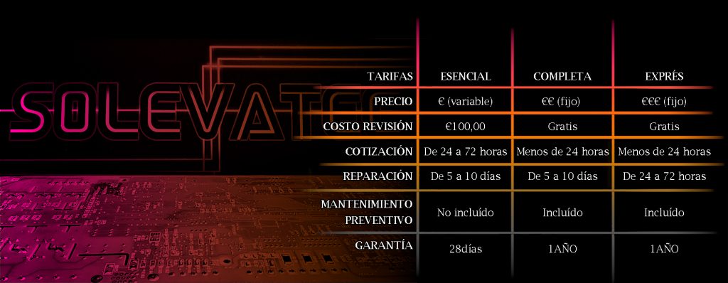 Nota: en promedio, el coste de reparación en esta modalidad, suele ser 40% más económico que nuestra Tarifa Completa.